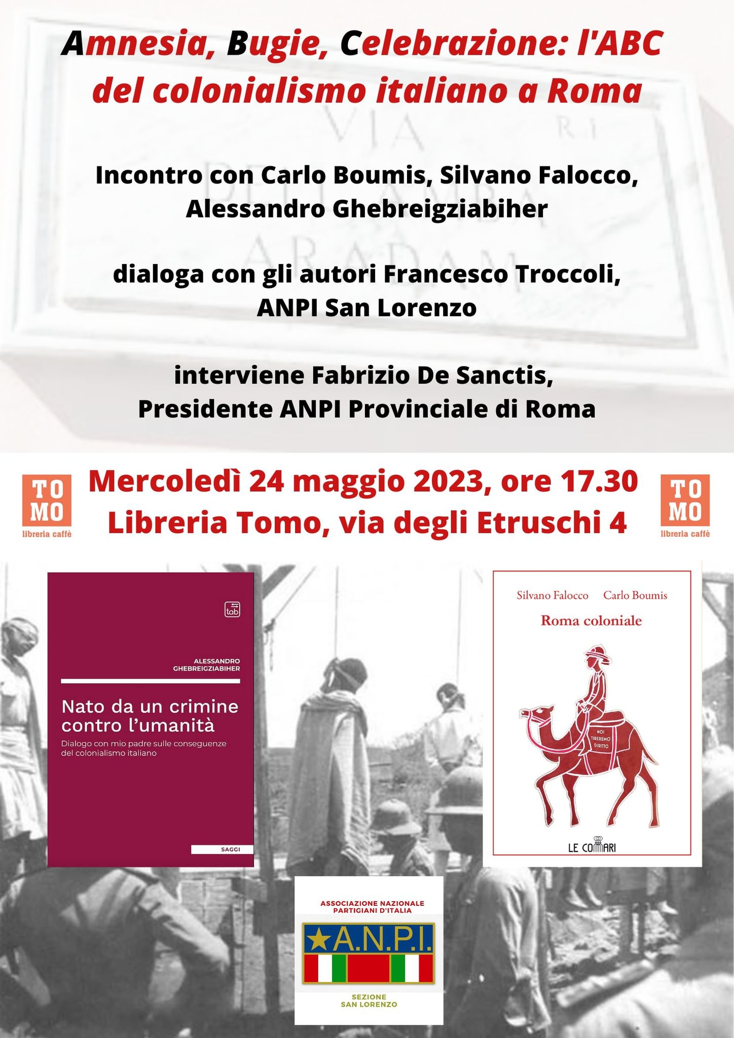 Incontro con Alessandro Ghebreigziabiher, che presenta il suo libro Nato da un crimine contro l'umanità, in dialogo con Carlo Boumis e Silvano Falocco, autori di Roma coloniale (edizioni Le Commari).
