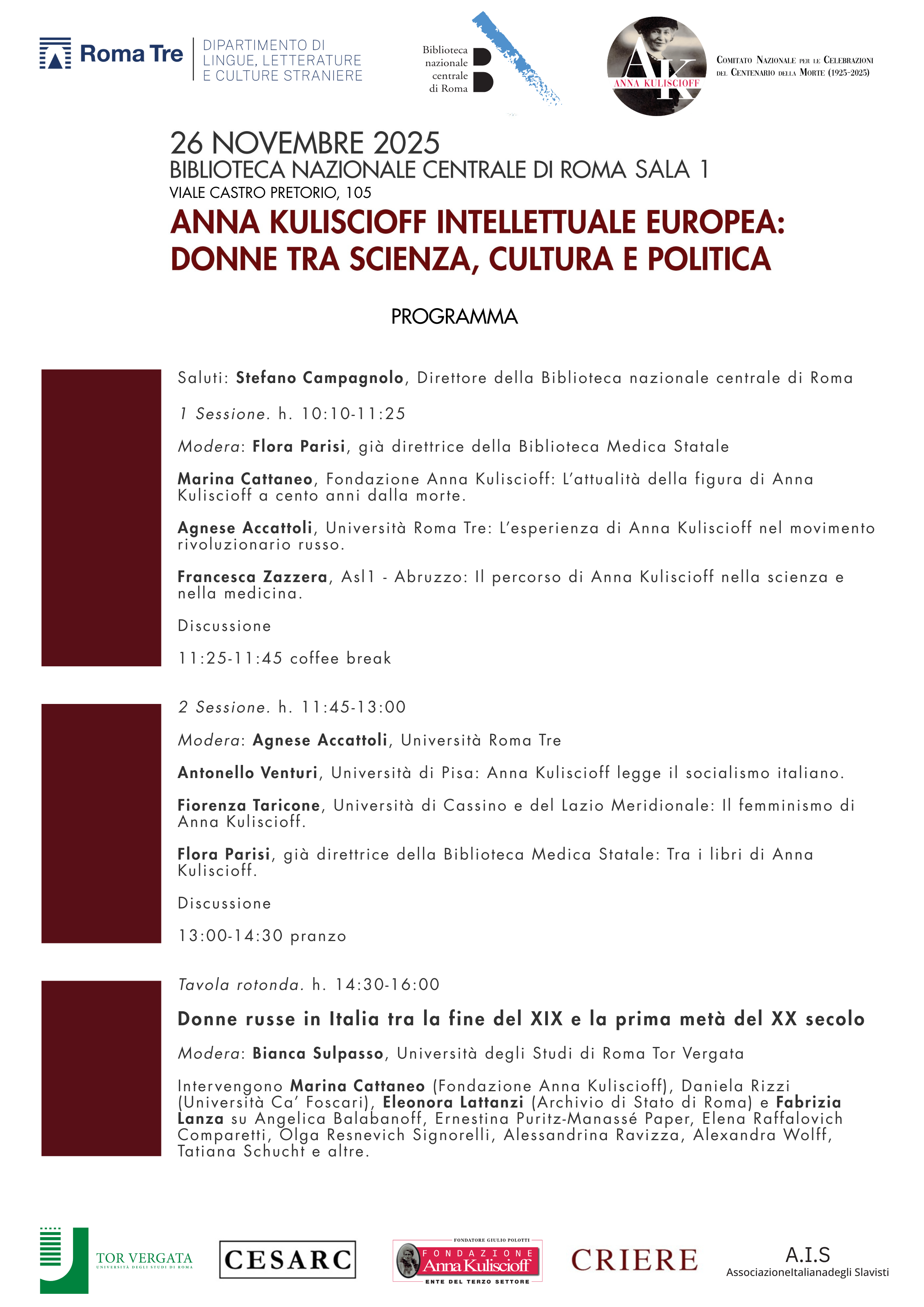 Nella sala 1 della Biblioteca Nazionale Centrale di Roma, Fiorenza Taricone presenta il suo libro Oltre il tempo patriarcale. La lungimiranza di Anna Kuliscioff. Dialogano con la curatrice Flora Parisi e Antonello Venturi.