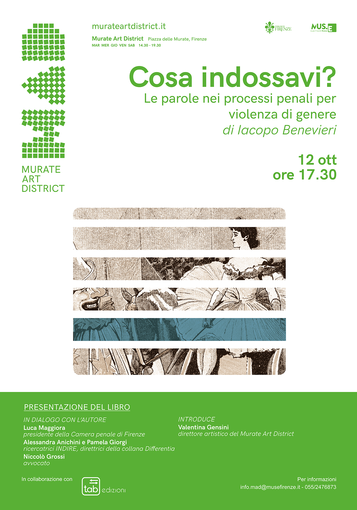 Iacopo Benevieri, presidente della Commissione sulla Linguistica giudiziaria della Camera penale di Roma, presenta il suo libro Cosa indossavi? Le parole nei processi penali per violenza di genere presso il Murate Art District di Firenze.