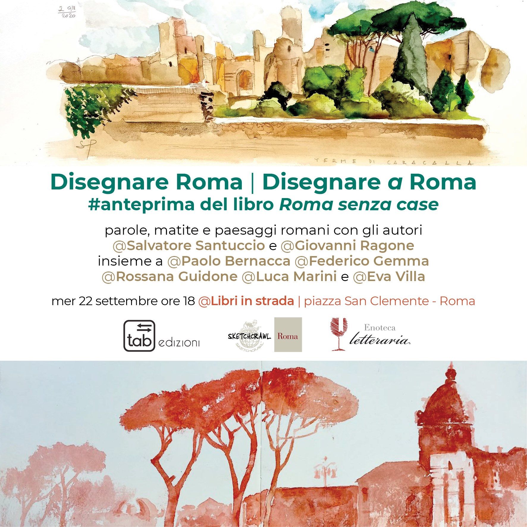 Salvatore Santuccio e Giovanni Ragone presentano in anteprima il loro libro Roma senza case e dialogano, matita alla mano, con gli artisti di Sketchcrawl Roma.