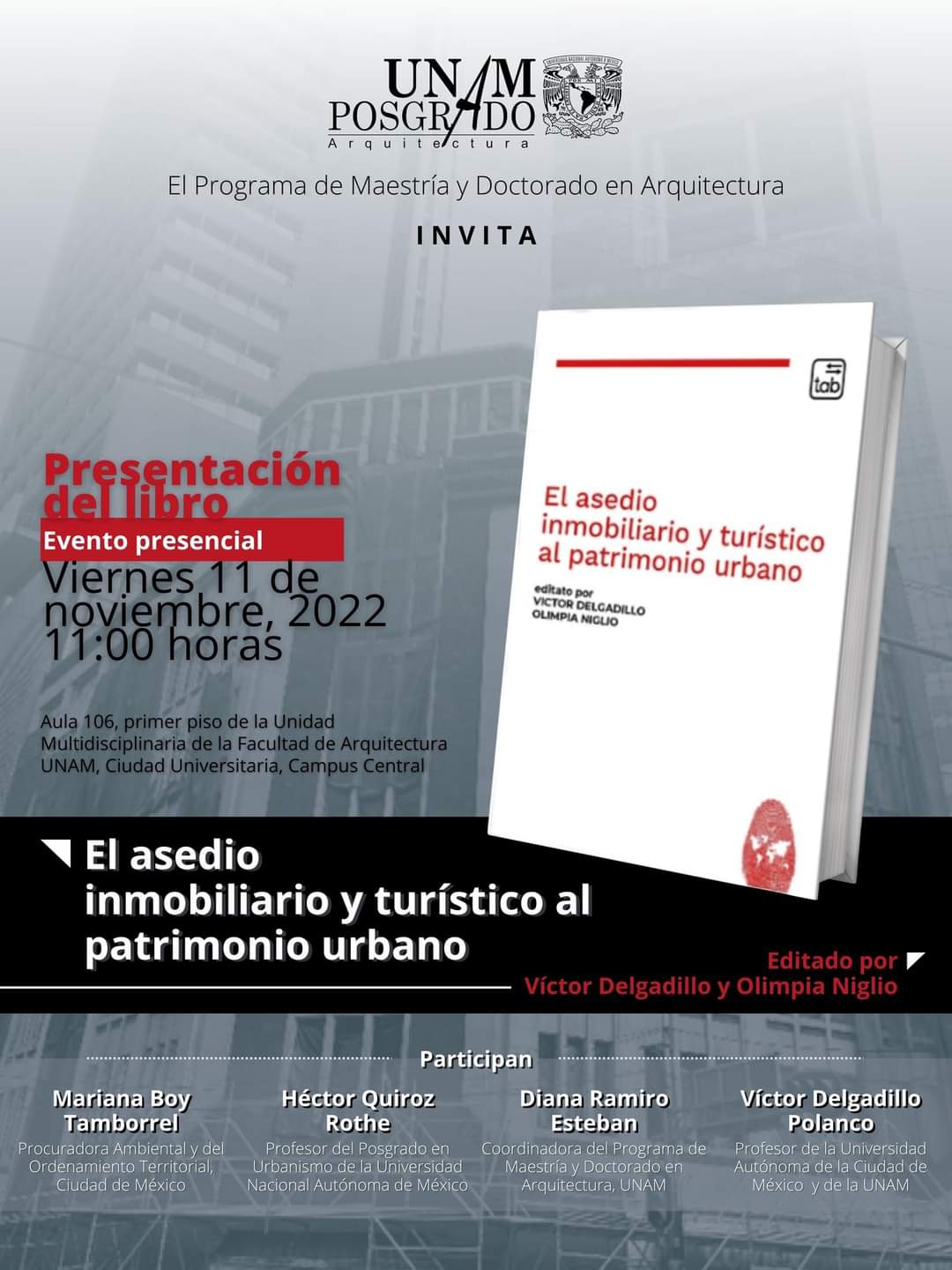 Presentazione del libro El asedio inmobiliario y turístico al patrimonio urbano a cura di Victor Delgadillo e Olimpia Niglio.
