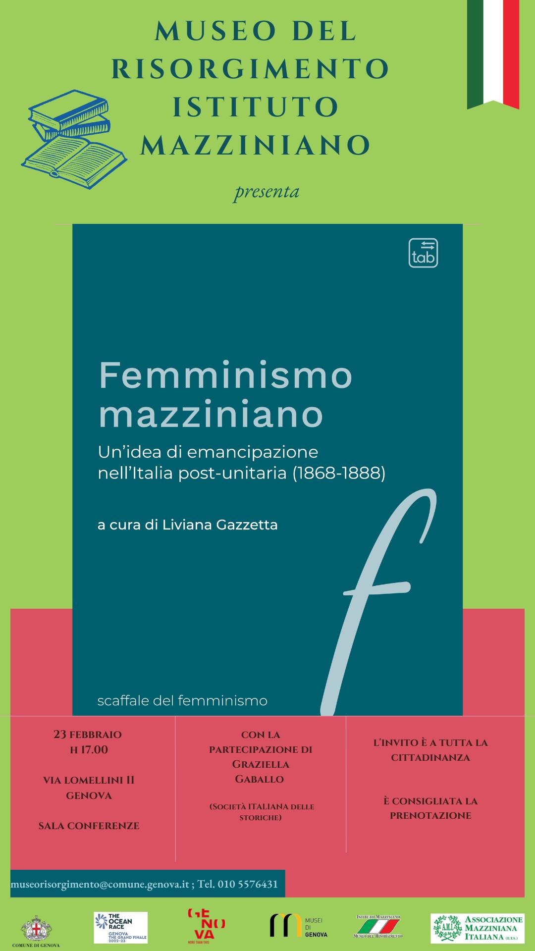 È consigliata la prenotazione (museorisorgimento@comune.genova.it | tel. 010 5576431)