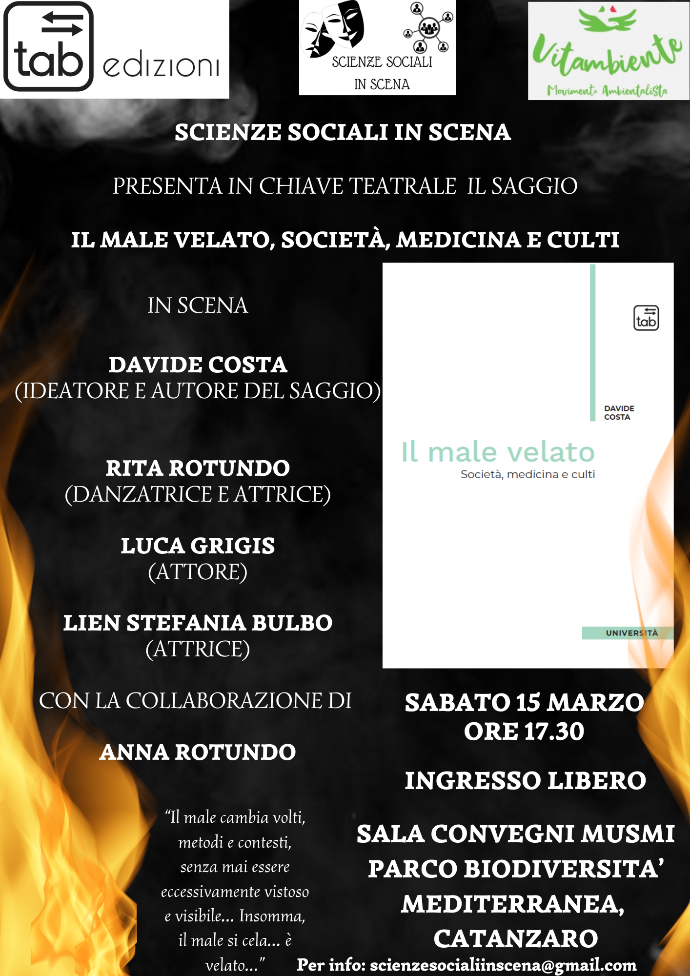 Davide Costa presenta in chiave teatrale il suo saggio Il male velato.