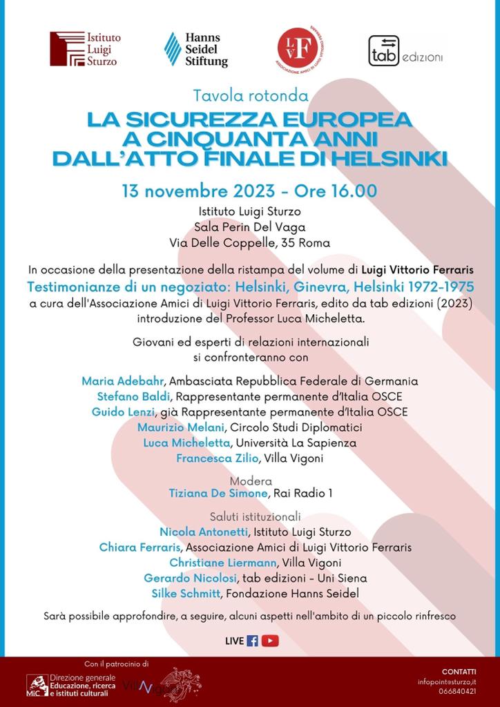 Questo libro fu pubblicato per la prima volta nel 1975, subito dopo la firma dell’Atto Finale di Helsinki, a cura di Luigi Vittorio Ferraris, uno dei più importanti esponenti della diplomazia italiana del Novecento e testimone del negoziato. Con questa pubblicazione si vollero documentare risvolti e difficoltà della trattativa, mostrare il buon merito della politica estera dell’Italia e quello spirito di Helsinki che guidò tutti i protagonisti, convinti che la pace nel mondo si costruisse a cominciare da un continente europeo che doveva ritrovare la sua unità.