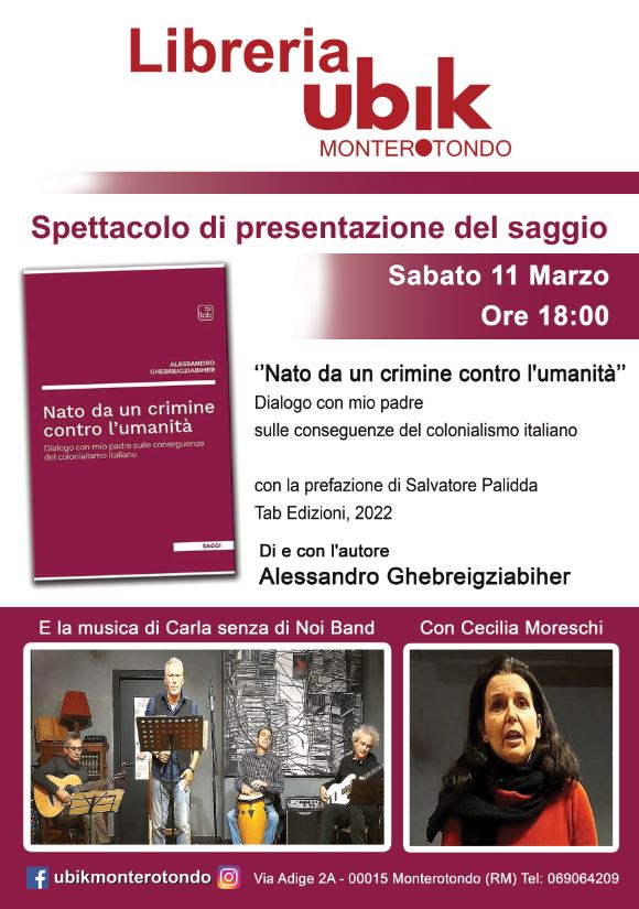 Spettacolo di presentazione del libro Nato da un crimine contro l'umanità di Alessandro Ghebreigziabiher.
