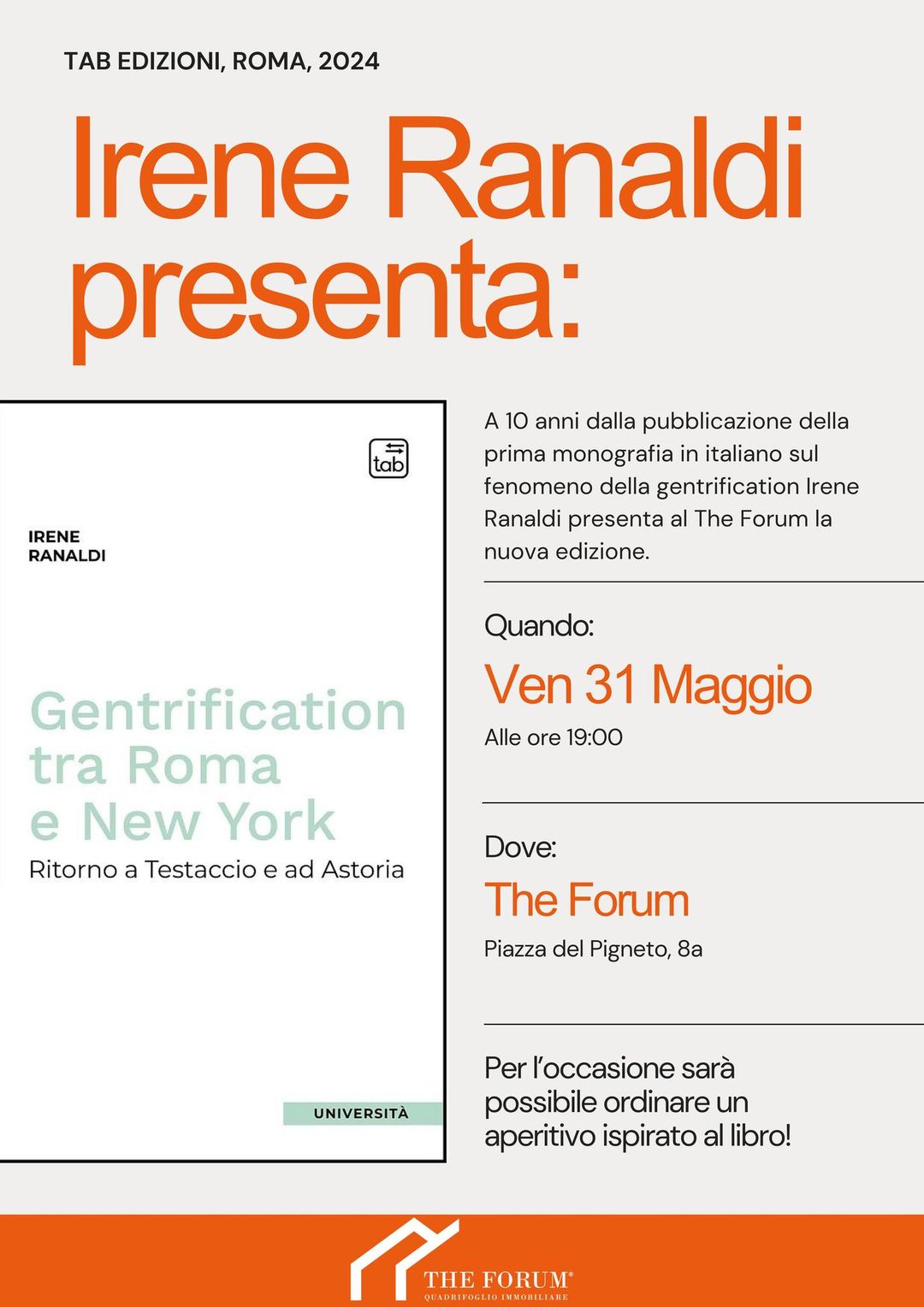 Irene Ranaldi presenta il suo Gentrification tra Roma e New York a The Forum - Bistrot e Coworking.