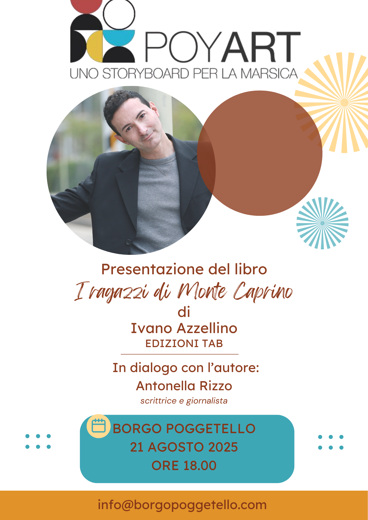 Durante la manifestazione Poy Art organizzata dall'Associazione Borgo Poggetello, Ivano Azzellino presenta il suo libro I ragazzi di Monte Caprino.