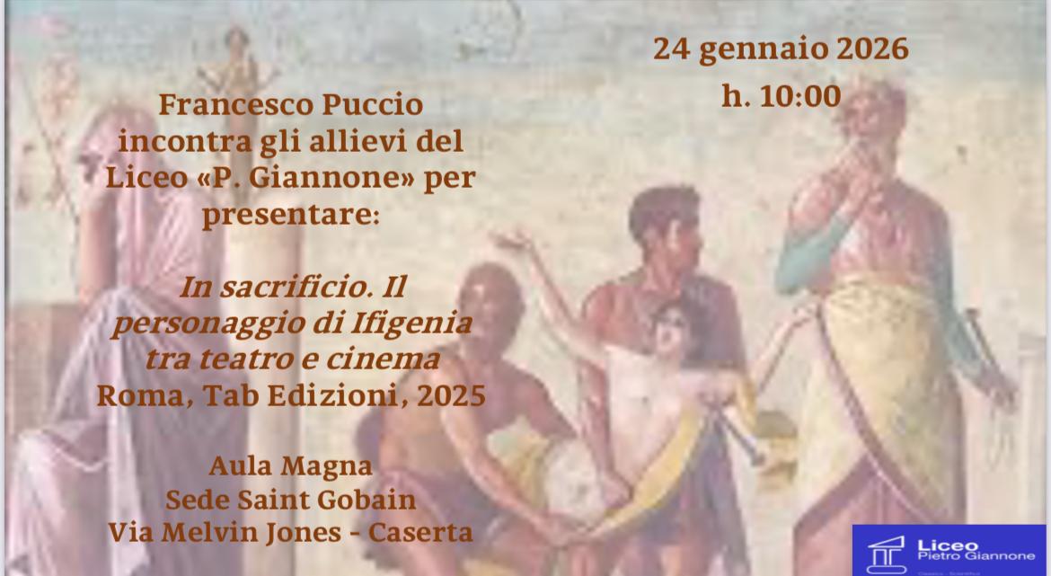 Francesco Puccio incontra gli allievi del liceo Giannone per presentare il suo libro In sacrificio. Il personaggio di Ifigenia tra teatro e cinema.