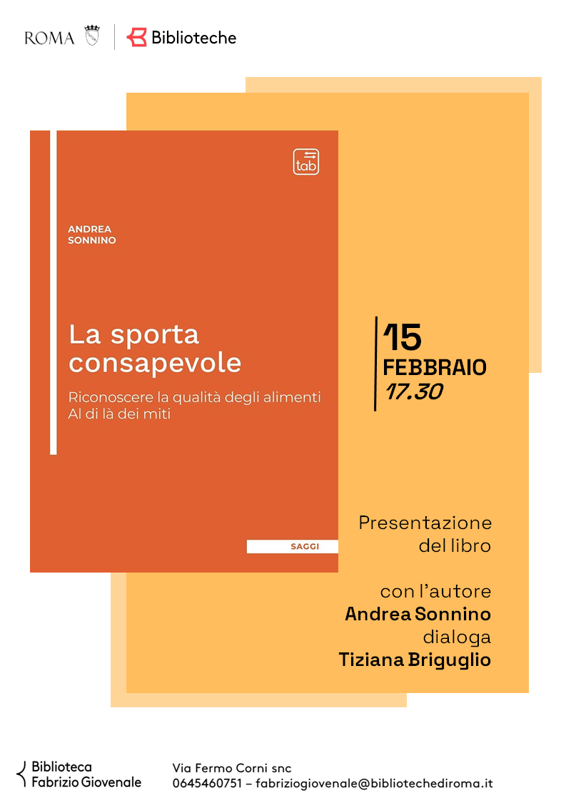 Se l'argomento vi interessa non perdete la presentazione di giovedì 15 febbraio! Parleranno del libro La sporta consapevole l'autore, Andrea Sonnino, in dialogo con Tiziana Briguglio, giornalista specializzata nel settore agricolo ed enogastronomico, e vice presidente dell'ARGA Lazio.