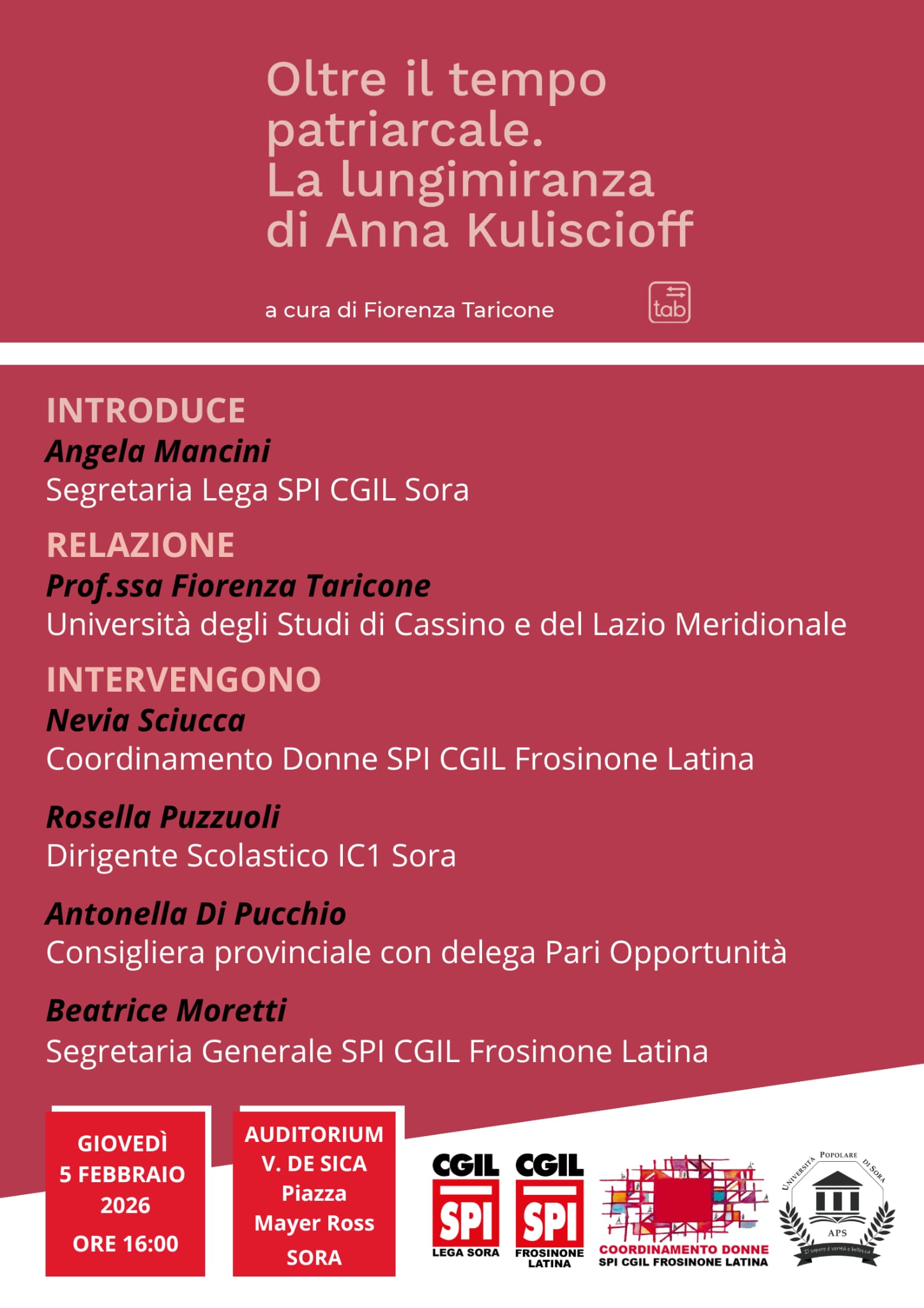 Fiorenza Taricone presenta il suo libro Oltre il tempo patriarcale. La lungimiranza di Anna Kuliscioff.