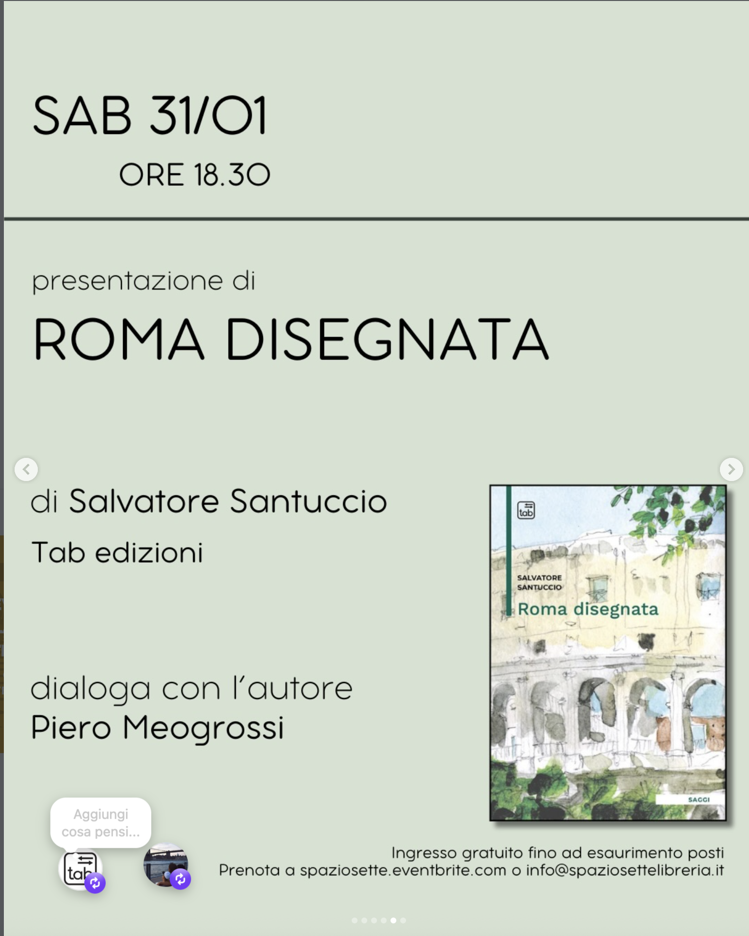 Salvatore Santuccio presenta il suo libro Roma disegnata. Dialoga con l’autore Piero Meogrossi.