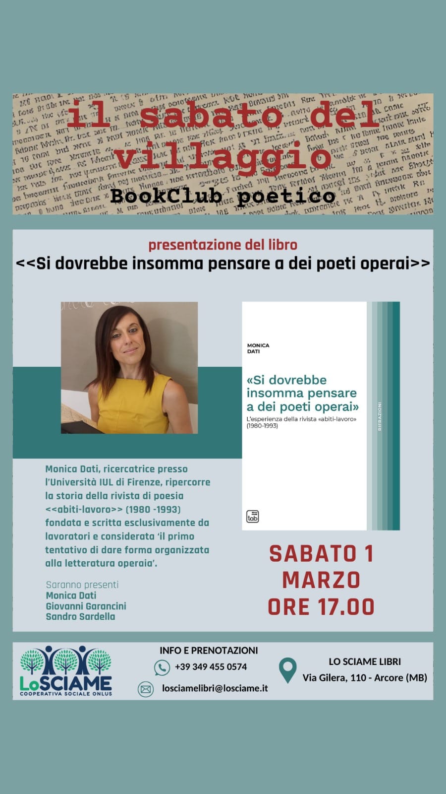 Ospite della libreria Lo Sciame, Monica Dati presenta il suo libro «Si dovrebbe insomma pensare a dei poeti operai».