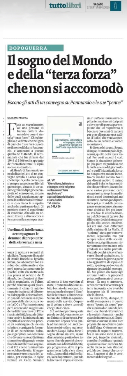 Il libro contiene gli atti del convegno Giornalismo, letteratura e impegno civile nel primo ventennio dell’Italia repubblicana tenutosi a Lucca nel 2023 per i cinquantacinque anni del Centro Pannunzio di Torino. Studiosi provenienti da importanti università italiane e istituti di ricerca hanno discusso su personalità e tematiche del panorama politico e culturale dell’immediato dopoguerra, con particolare riguardo alla componente liberale. Pannunzio e Benedetti, Longanesi e Flaiano, Brancati e Silone, Croce, Rossi, Calogero sino ai “giovani” Marco Pannella e Angiolo Bandinelli sono oggetto di studio per una riflessione su uno dei periodi culturalmente più vivaci della storia di un Paese che seppe risollevarsi dalle macerie della Seconda guerra mondiale.