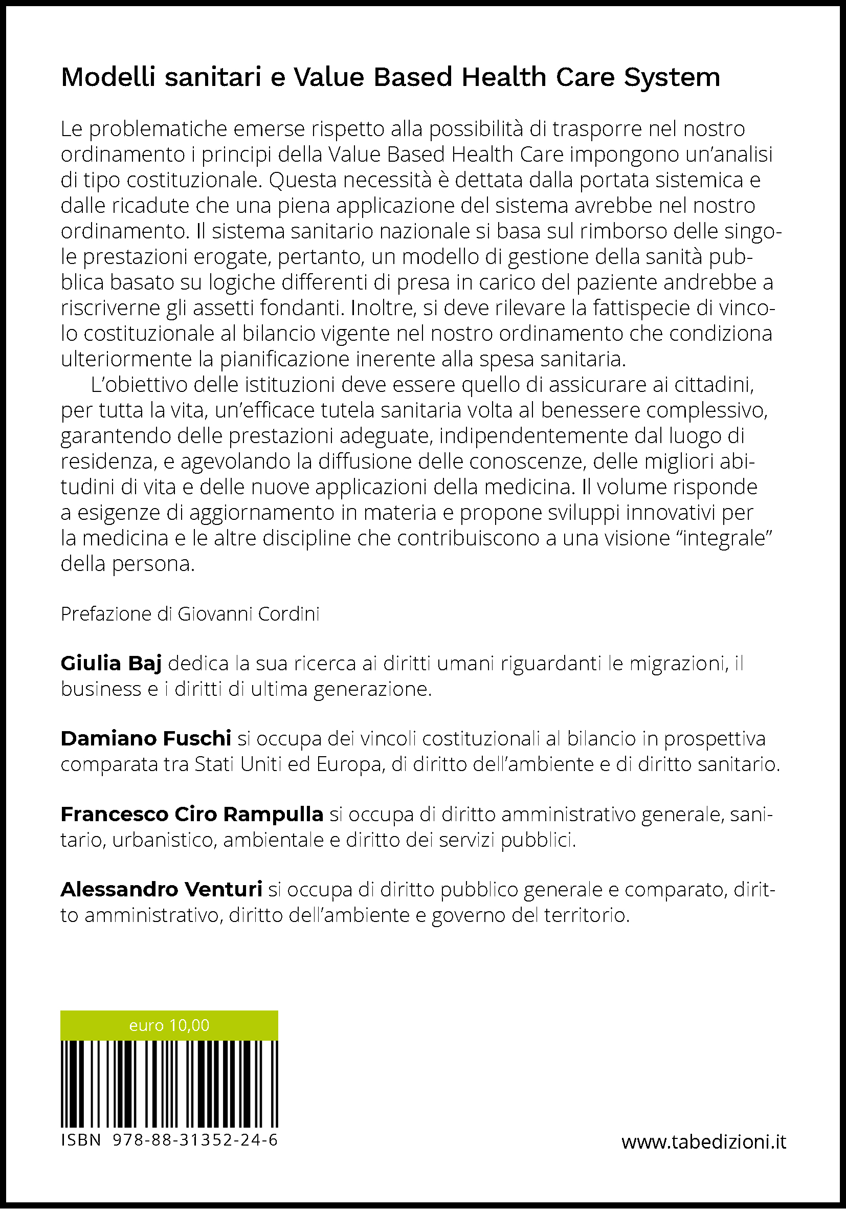 Le problematiche emerse rispetto alla possibilità di trasporre nel nostro ordinamento i principi della Value Based Health Care impongono un’analisi di tipo costituzionale. Questa necessità è dettata dalla portata sistemica e dalle ricadute che una piena applicazione del sistema avrebbe nel nostro ordinamento. Il sistema sanitario nazionale si basa sul rimborso delle singole prestazioni erogate, pertanto, un modello di gestione della sanità pubblica basato su logiche differenti di presa in carico del paziente andrebbe a riscriverne gli assetti fondanti. Inoltre, si deve rilevare la fattispecie di vincolo costituzionale al bilancio vigente nel nostro ordinamento che condiziona ulteriormente la pianificazione inerente alla spesa sanitaria.