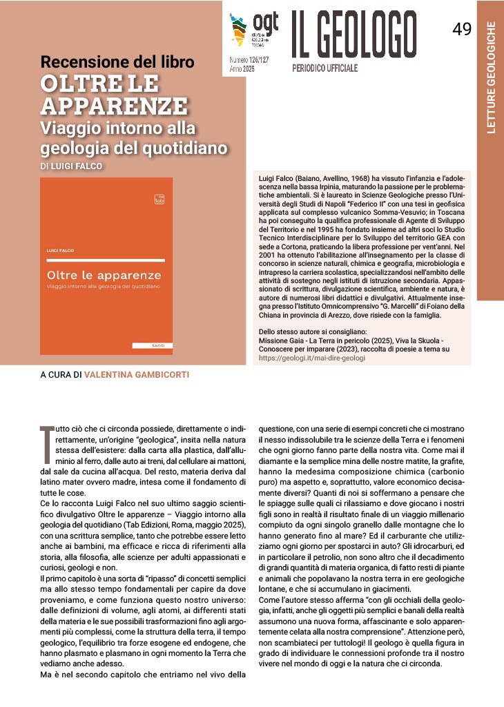 La geologia, nella sua accezione più ampia, lambisce i più disparati campi di applicazione che riguardano la vita di tutti i giorni. Qualsiasi cosa intorno a noi affonda le proprie radici nella matrice geologica: dalla carta alla plastica, dall’alluminio al ferro, dalle auto ai treni, dal cellulare ai mattoni, dal sale da cucina all’acqua. Non esiste oggetto o materiale che direttamente o indirettamente non richiami la natura geologica del suo esistere. L’autore coglie il nesso tra le scienze della Terra e i fenomeni che ogni giorno fanno parte della nostra vita e ci conduce in un viaggio nel mondo della geologia del quotidiano per scoprire cosa si nasconde oltre le apparenze.
