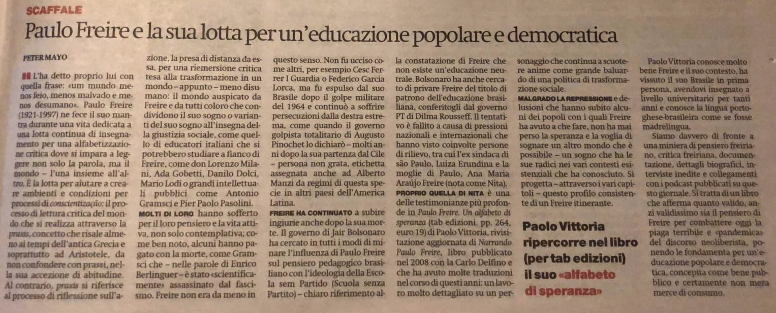 «Io non voglio essere seguito: voglio essere reinventato» ha scritto Paulo Freire, educatore pernambucano molto citato ma ancora poco conosciuto. Paolo Vittoria, con la meraviglia e l’umiltà del ricercatore sul campo, riscopre e ricompone il percorso biografico ed ermeneutico di Freire: dalla formazione radicata in terra di Recife all’esilio dal Brasile, dagli incontri internazionali «ai concetti, agli eventi, alle esperienze da cui si costruiscono confronti nel campo dell’educazione, rintracciando il circuito semiaperto della genealogia del pensiero freiriano nelle influenze dell’esistenzialismo, del marxismo, del personalismo e del pensiero umanista» (Nita Freire). Il libro approfondisce, tra gli altri, i concetti di coscientizzazione, dualismo oppressi-oppressori, ecopedagogia e curiosità epistemologica, raccogliendo l’invito di Freire a un apprendimento permanente e alla praxis come riflessione sulla pratica educativa per un’azione trasformatrice fondata sul dialogo.